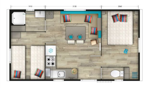 1 canapé lit 2 personnes dans un séjour de 20 m2